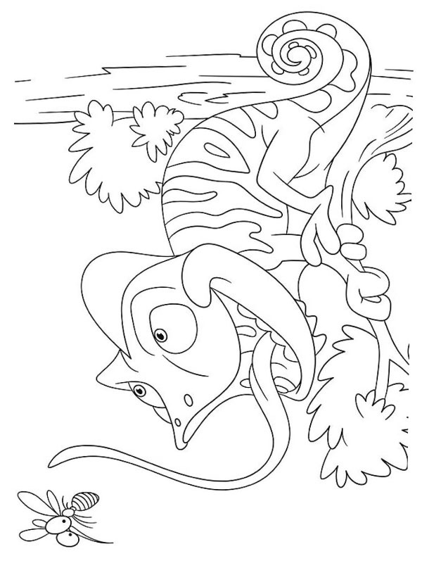 Dibujo de Camaleon atrapando un mosquito para Colorear